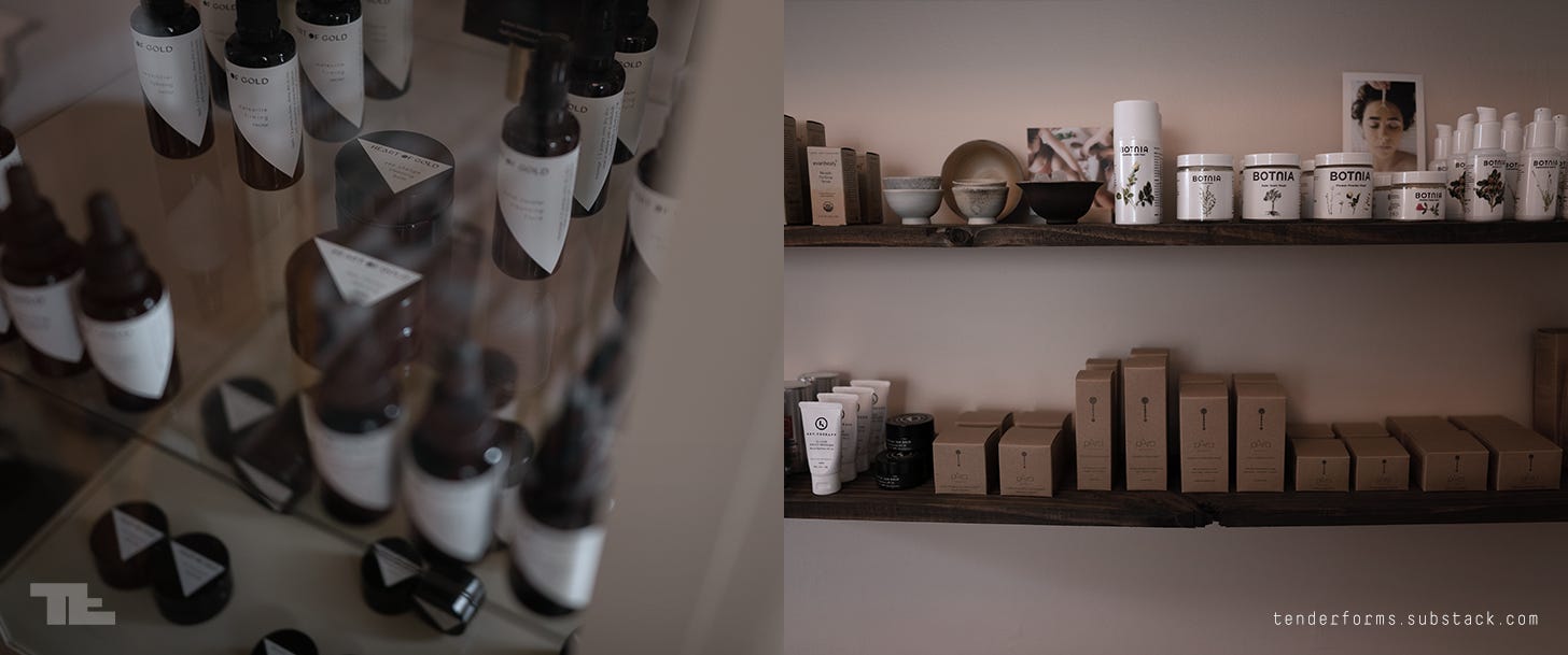 My appointment was an incredible facial and massage. Rebecca’s hands work magic: strong to work out pesky knots, increase circulation, restore my body back to its best, and gently smooth out the stress lines, all while working in the beautiful mists, serums, oils, and balms. Because this was a Botnia-centric facial, I thought I’d share a few of the items she used: